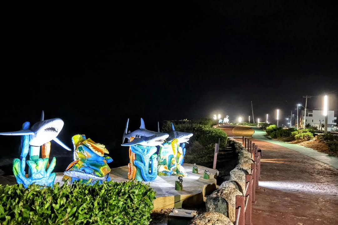 Este paseo se extiende a lo largo de la zona de la bahía y es famoso por albergar la imponente escultura del Tiburón Ballena, un tributo al gigante del mar que visita nuestras aguas. Es un camino mucho más relajado, ideal para quienes buscan una caminata tranquila mientras observan los barcos y disfrutan de la mejor vista hacia el horizonte de Cancún.